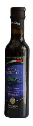 Descrizione: L'aceto di Mirtilli non è dell'aceto di vino aromatizzato ma è prodotto partendo dalla fermentazione di frutta selezionata, senza l'aggiunta di nessun tipo di additivi.